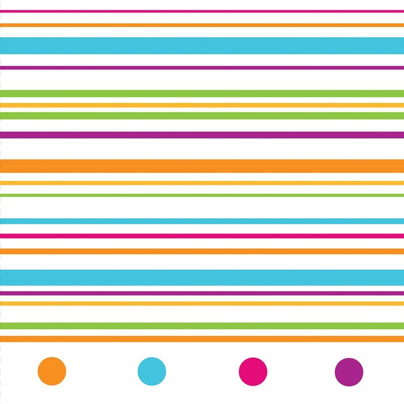 Add a pop of color to the table with our Happy Dots Beverage Napkins! Features a white napkin with a colorful stripe and dot pattern. Measures 5" x 5". Includes 16 - 3 ply paper beverage napkins per package.