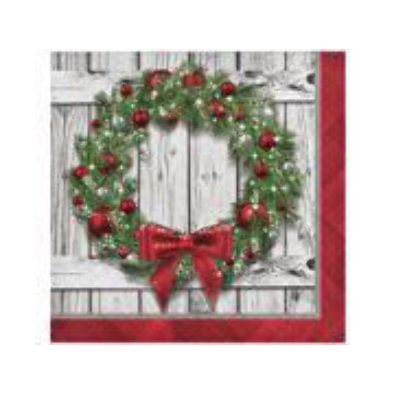 Creative Converting Rustic Wreath Christmas Party Tableware Beverage Napkins, Multicolor