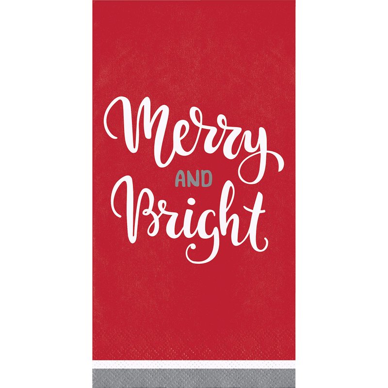- These napkins feature a mistletoe and the words “Merry & Bright” with a green, white, and red theme