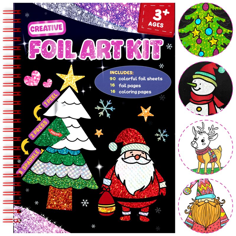 Creative Foil Art Kit for Kids - Christmas Themed Craft Set with 90 Foil Sheets & 32 Pages - Fun DIY Activity for Kids Ages 3-9 - Perfect Holiday Gift, Mess-Free Crafting & Creative Play