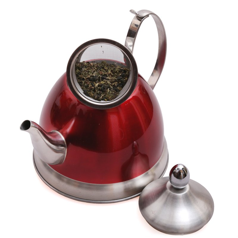 Creative Home Nobili-Tea 1.0 Quart Stainless Steel Tea Kettle with Removable Infuser Basket and Aluminum Capsulated Bottom for Even Heat Distribution, Metallic Cranberry