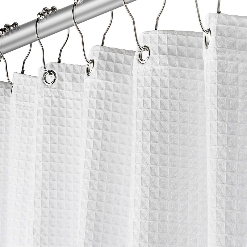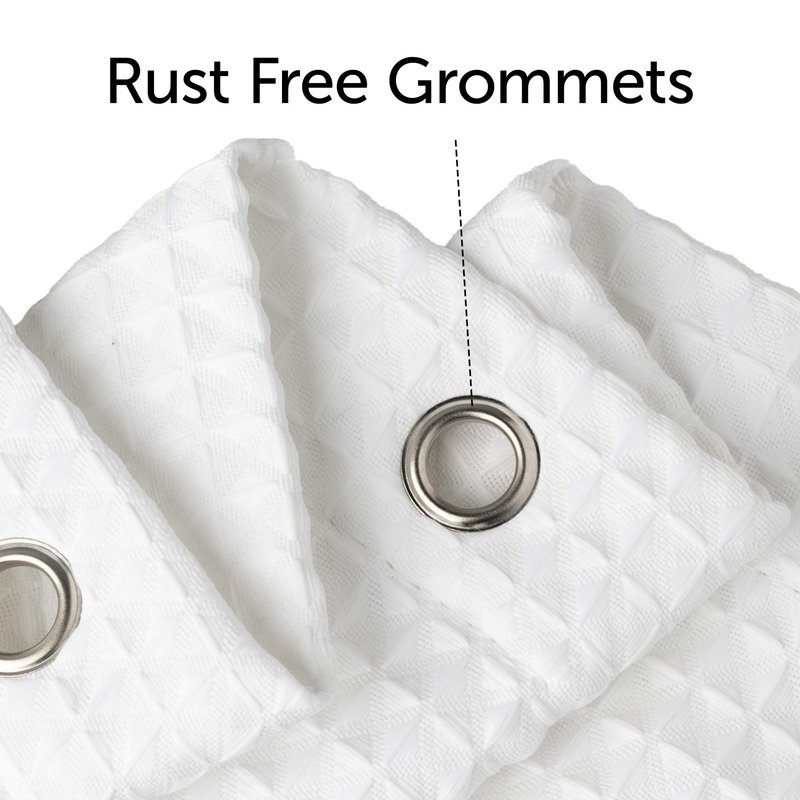 - Water Resistant: A Water-Resistant Waffle Weave Design Keeps Your Fabric Shower Curtain White Clean and Dry.