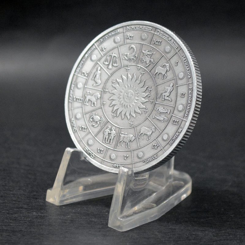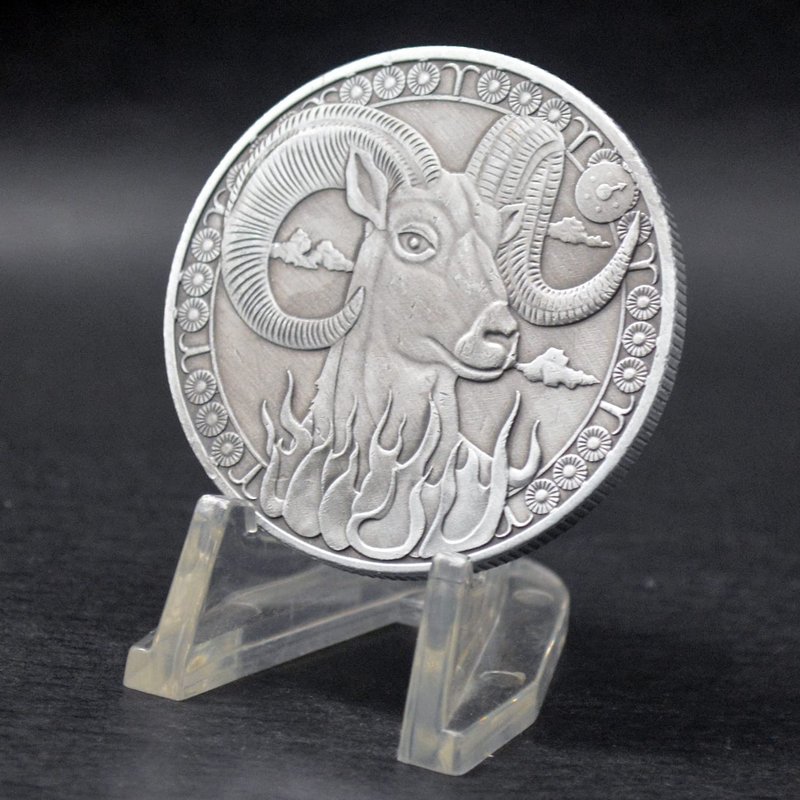 Creative Twelve Constellations Zodiac Coin Challenge Ancient Silver Commemorative Coins Home Decor Crafts Art Collection Gift (Aries)