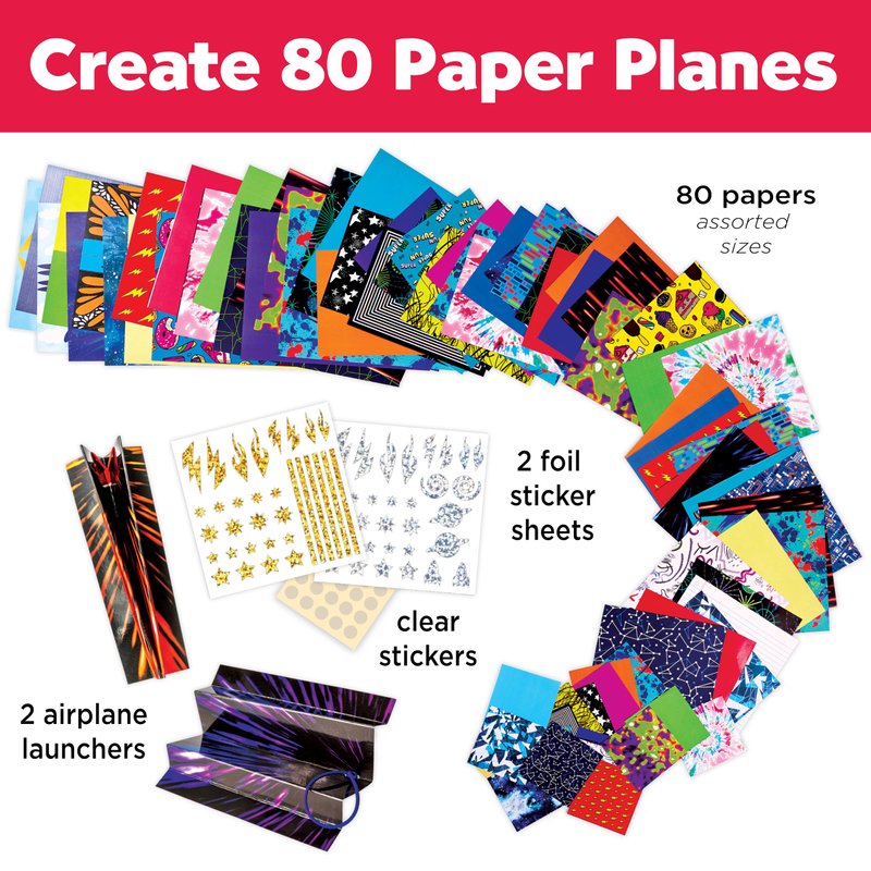 - CREATE 80 PAPER AIRPLANES: Fold, decorate, and fly a fantastic fleet of paper airplanes! From easy to medium skill level, our paper airplane designs were chosen so everyone will have fun. Just fold, decorate with fun stickers, and launch your paper airplanes to new heights! These paper airplane kits make great 8 year old boy gifts, fostering creativity and providing hours of entertainment