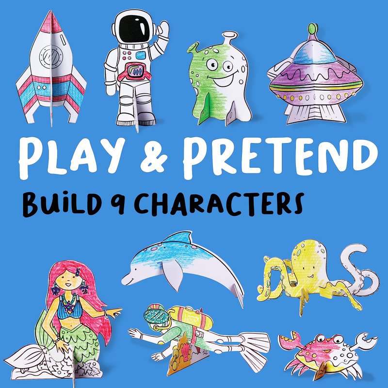 - KIDS CRAFTS AGES 5-8: Wonder Worlds are filled with mermaids, astronauts, and more surprises as a craft for boys and girls. The sustainable DIY kit comes with everything to color, sticker, and build your own cardboard 3D playscape and characters. Add imagination for endless creative fun!