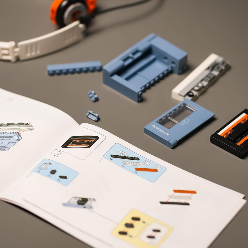 - Features a detailed build-and-display model of a 1970s cassette player .The model features realistic design details, including a wearable headphones, an openable lid, a tape.Suitable for both kids and adults, especially for building fans,inspiring their imagination and creativity