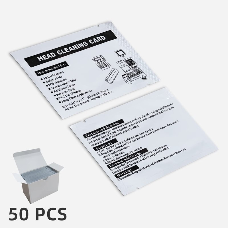 Credit Card Reader Cleaning Cards CR80 Dual Side POS Swipe Card Reader Cleaner for MSR90 MSR605X MSR X6 etc. (50 Cards)