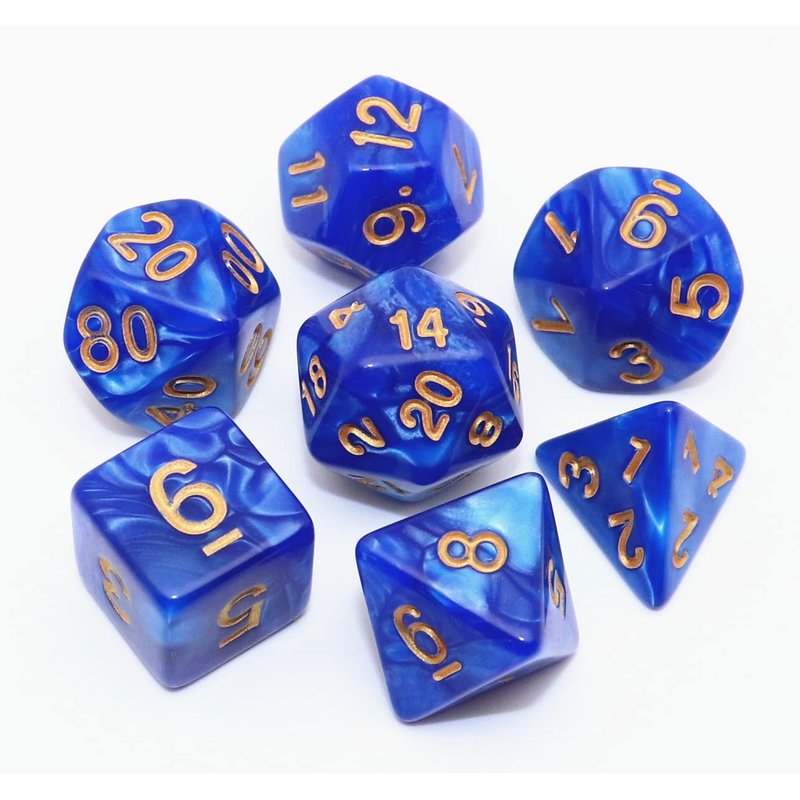 - 🎲7Pcs Polyhedral DND Dice Set: Blue d&d pearl dice, including D20 D12 D10 D% D8 D6 D4 and a dice bag, suitable for your own use or as a gift.