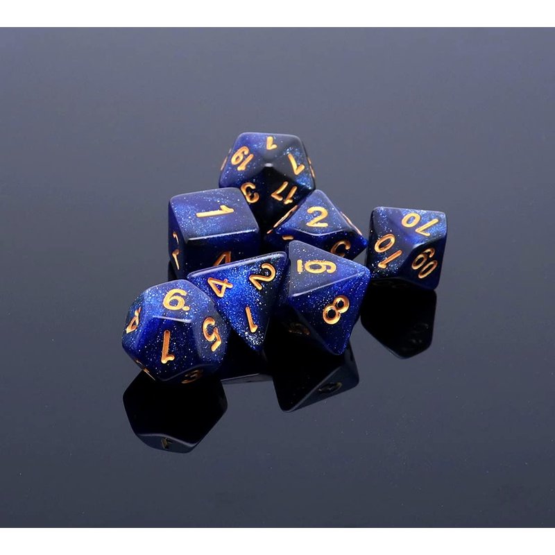 CREEBUY DND Dice Set Dark Blue Mix Black Nebula Dice for Dungeon and Dragons D&D RPG Role Playing Games 7Pcs Polyhedral Dice with Dice Bag