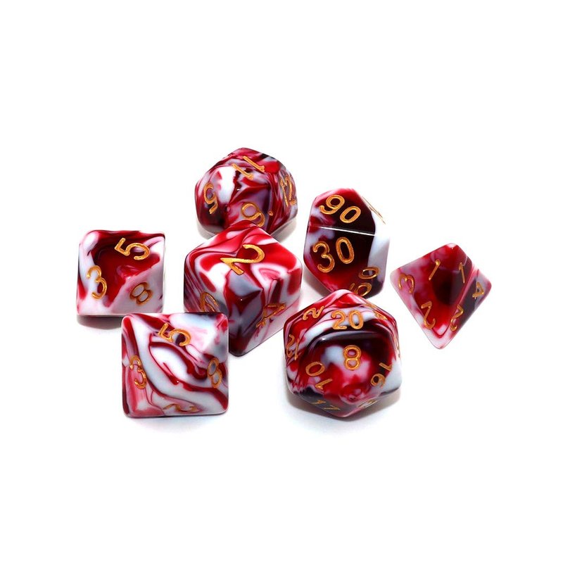 - 🎲7Pcs Polyhedral DND Dice Set: Red and white double color d&d dice, including D20 D12 D10 D% D8 D6 D4 and a dice bag, suitable for your own use or as a gift.