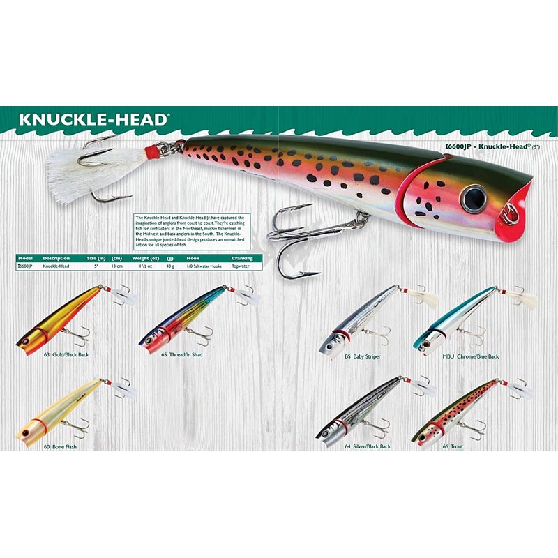 - The Knuckle-Head is great for a variety of topwater feeders in both fresh and salt water such as bass, redfish, stripers, and other ferocious feeders