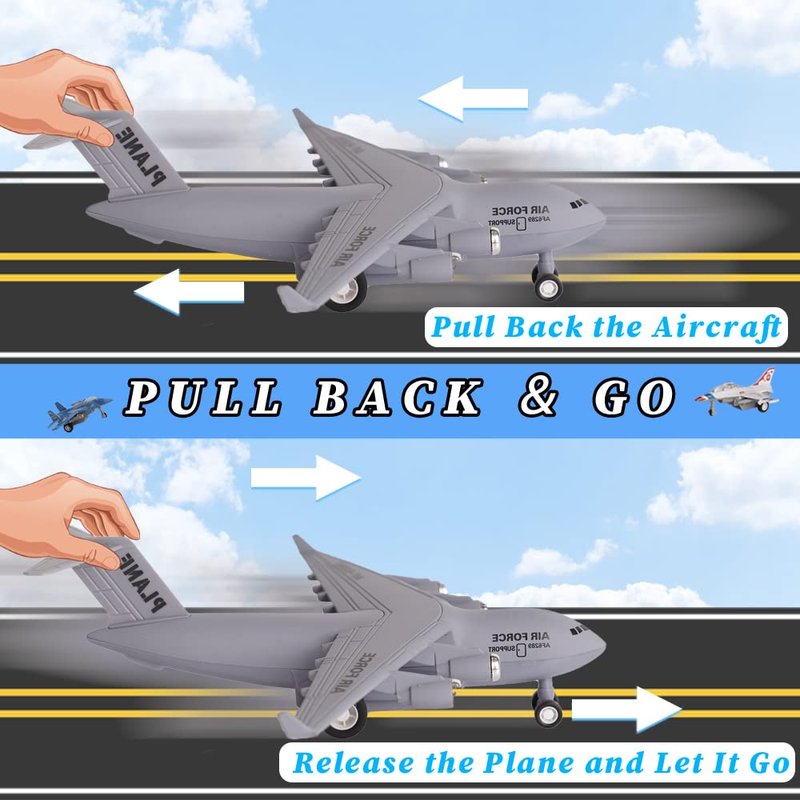 - 🚁【Pull Back Fighter Aircraft】All military planes have pull back function. No battery is required. Press the toy and then pull it back, it will go forward a long distance after releasing. Cool pull back aircrafts will help develop child's sport skills.
