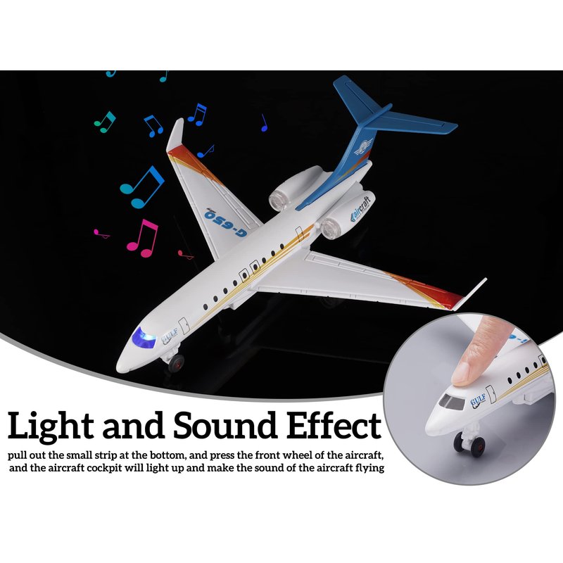 - đĢ[Lights and Sound Effect]-Pull out the small white card strip at the bottom of the model plane, and press the plane lightly to trigger the function, the metal plane model will light up, and it will also make a sound that imitates the take-off of a real plane, making the plane look cool, and the colored lights can attract children 's attention.
