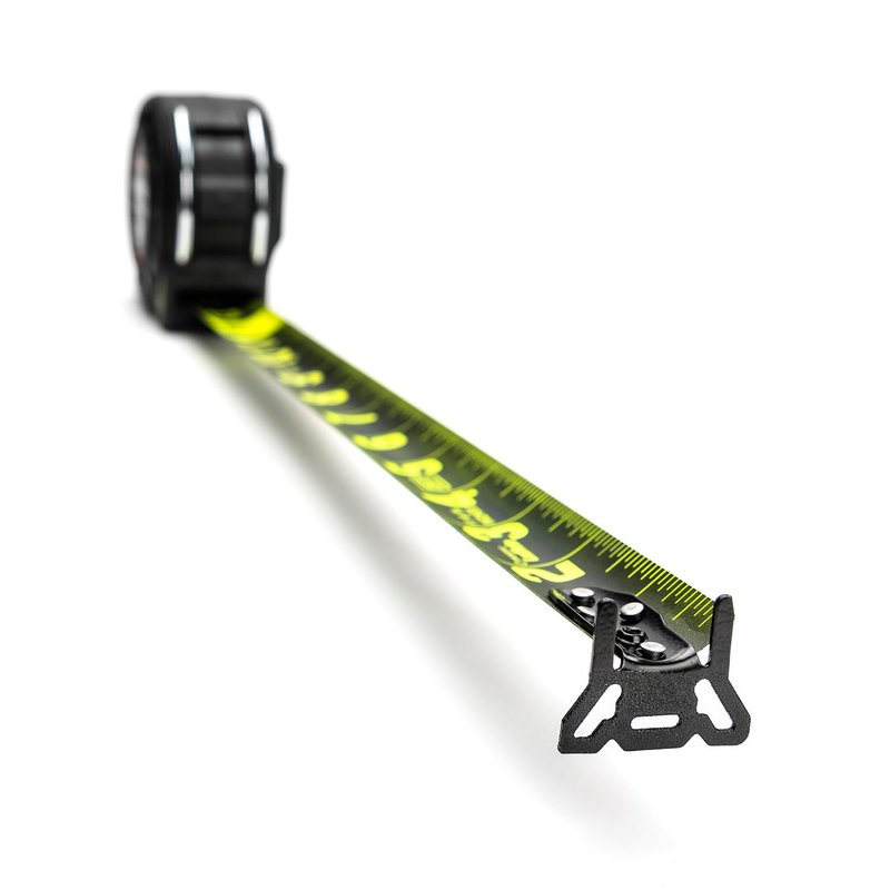 - Dual-sided blade printed with vertical quick read scale on underside for overhead and hard-to-reach measurements