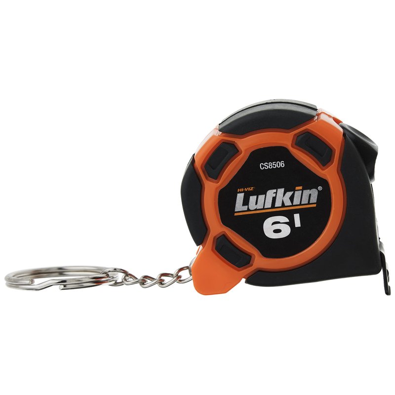 Crescent Lufkin 1/2" x 6' Mini Hi-Viz® Orange Yellow Clad Keychain Tape Measure - Counter Display - CS8506 , Black