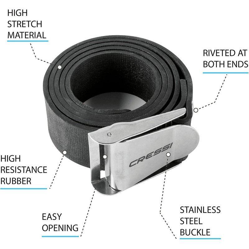 - The Premium Elastic Rubber Belt is designed in Italy by Cressi and made in Taiwan. Cressi has been an Italian brand pioneer in scuba diving, snorkeling and swimming equipment since 1946.