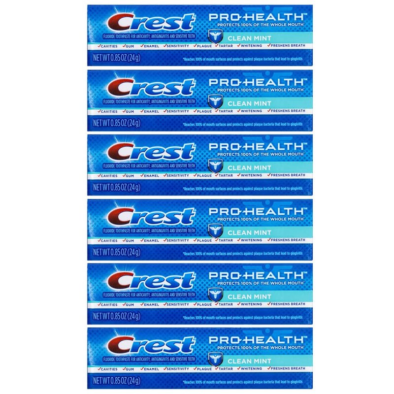 Crest Pro-Health, Clean Mint Toothpaste, Travel Size 0.85 oz (24g) - Pack of 6