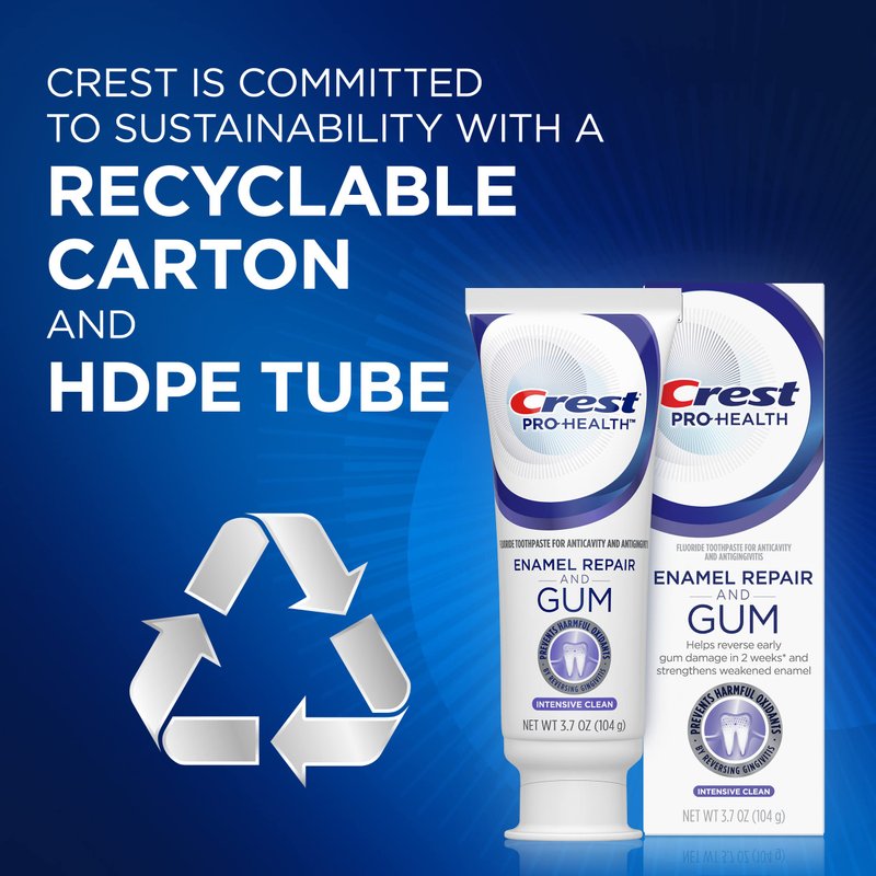 - Crest is committed to sustainability with a recyclable carton and HDPE tube. Learn more at Crest.com/recycling.