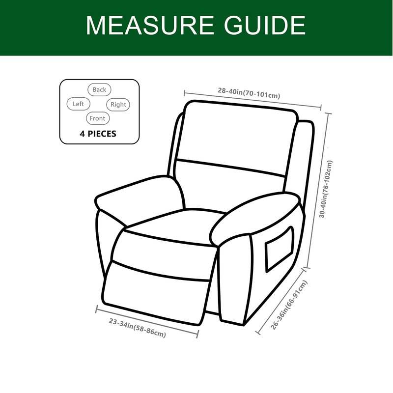 - ✅SINGLE SEATER RECLINER FIT: CRFATOP 4 piece patterned recliner slipcover fits most 1 seater reclining couch. It includes 4 seperate parts including 2 arm pieces, 1 seat piece and 1 back piece. Suitable for 28-40" back width, 30-40" height, 23-34" bottom width, 26-36" side width, please refer to the measurement picture before purchase. NOTE: CRFATOP recliner covers for small recliner has only one storage pocket, no hole for hand crank handle, please pay attention before buying.