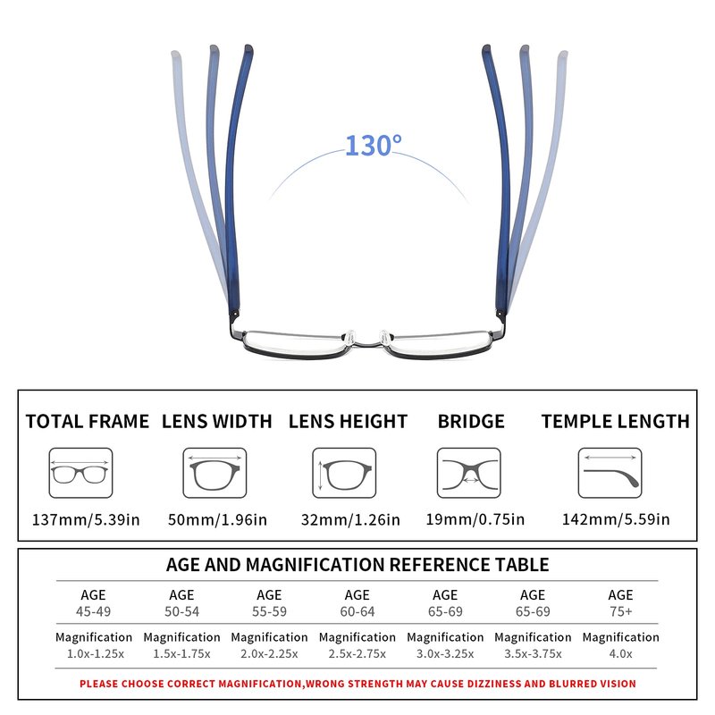 - ✔️【Item Dimensions】:Lens material: AC ( No glare & Clear vision ),Lens width: 50mm/ 1.97in,Lens height: 30mm / 1.18in,Frame material: metal , multiple Magnification strendth for you to choose: 1.00 1.25 1.50 1.75 2.00 2.25 2.50 2.75 3.0 3.25 3.50 3.75 4.00