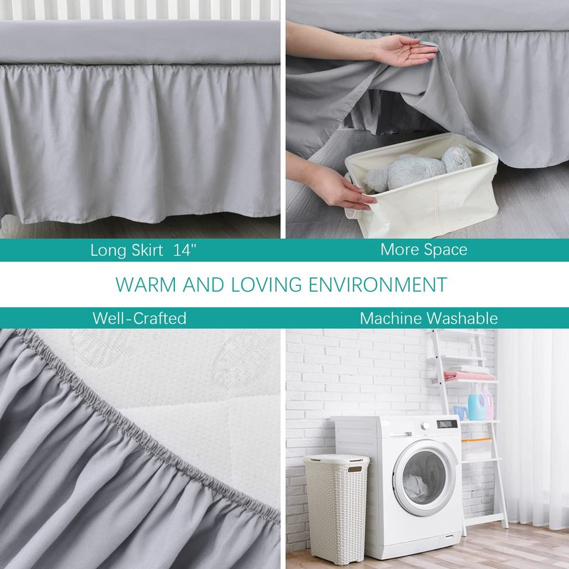 - Special: Adjustable elastic for one inch trimmed ruffle makes it easy to put on and take off your bed. It's wrap around for four sides and without a top cover.