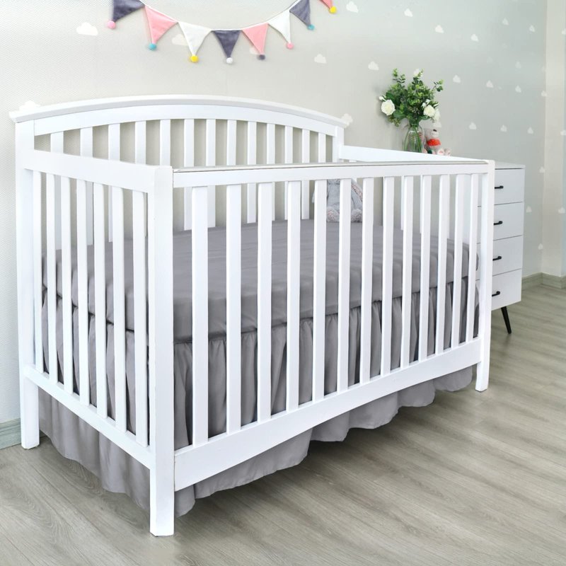 Crib Bed Skirt Grey 4 Sides Pleated Dust Ruffle Bed Skirt, Adjustable Nursery Crib Bedding for Baby Girls or Baby Boys, Fit All Standard Crib Toddler Bed Skirts Machine Wash