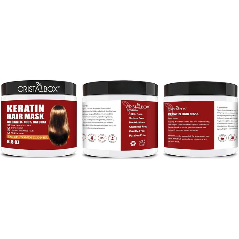 CRISTALBOX Keratin Hair Mask,Keratin Hair Treatment 250g Hair Mask for Dry Damaged Hair,Hair Treatment Mask Deep Repair Damage Hair Root,Natural Deep Conditioner Hydrating Hair Masque
