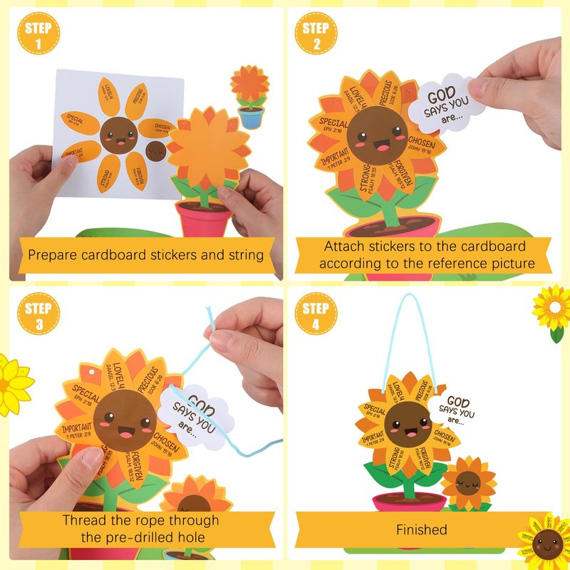 - Enjoy DIY Fun: play this religious sunflower Sunday school DIY craft kit activities can stimulate kids' creativity and imagination, allowing them to learn something while enjoying handicrafts fun; Just do these Sunday School DIY craft kits with your kids or students, to enjoy your happy DIY time, and enhance your relationship