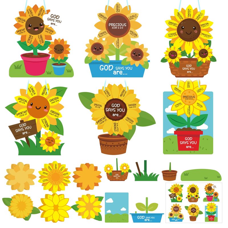 - Unique Designs: religious sunflower crafts just like a golden sunflower in the backyard, this craft will remind kids just how beautiful, special and unique they are; Kids will have fun assembling this easy faith inspired craft while learning about themselves through God's eyes