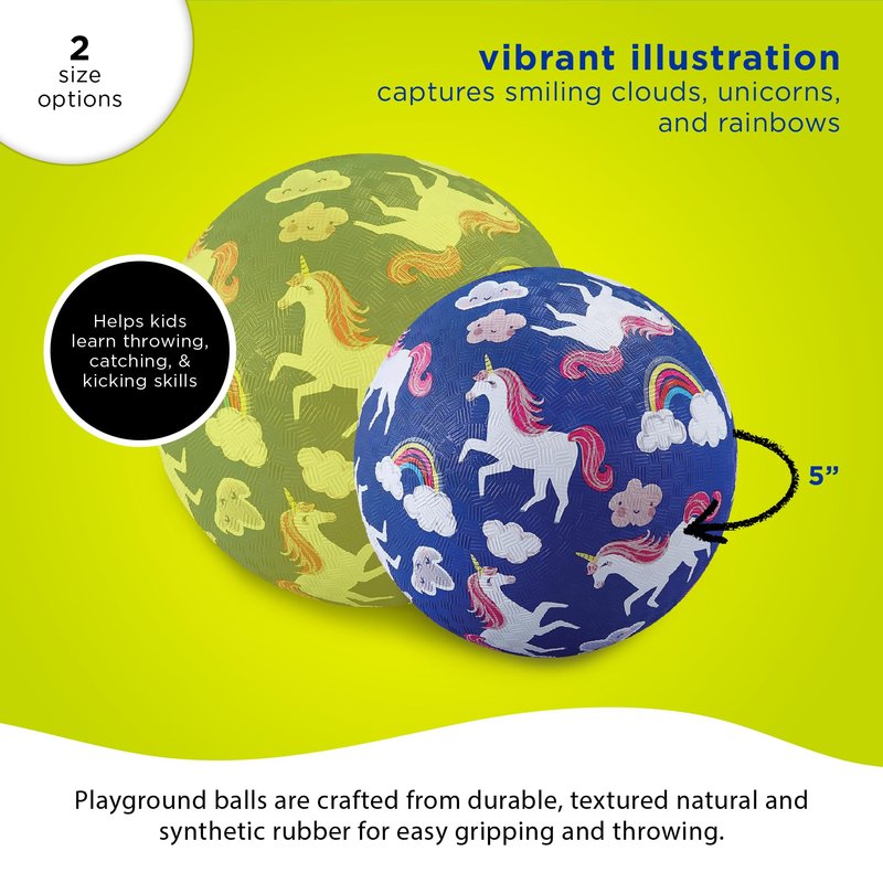Crocodile Creek Playground Ball - Durable Rubber Ball for Kids Ages 3 and Up - Bouncy Inflatable Ball for Kickball, Indoor Games, and Outdoor Sports - PVC-Free - Unicorns - 5-inch Diameter