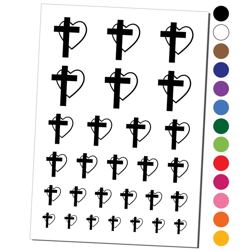 Cross and Heart Love Christian Temporary Tattoo Water Resistant Fake Body Art Set Collection - Black (One Sheet)