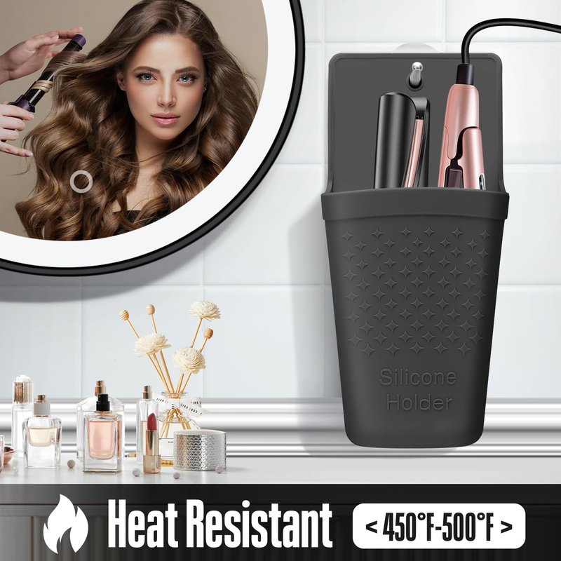 - THREE FUNCTIONS:As a mat, to protect any surfaces from heat damage. As a pouch, to store the hair iron tool even while it is hot. As a holder, to hang on any smooth surface like wall or dressing table with an stainless steel adhesive hook (comes with the product)