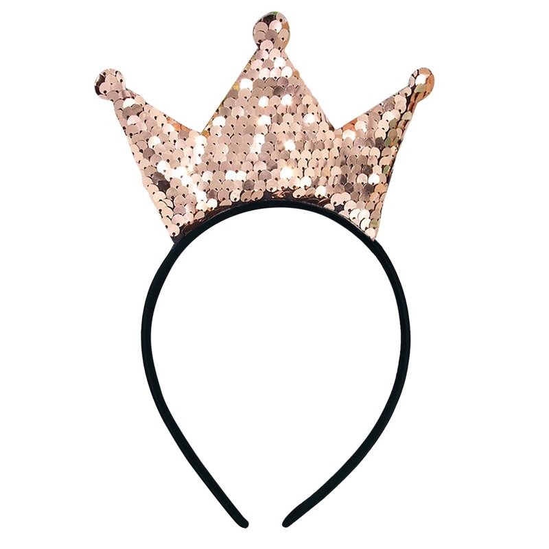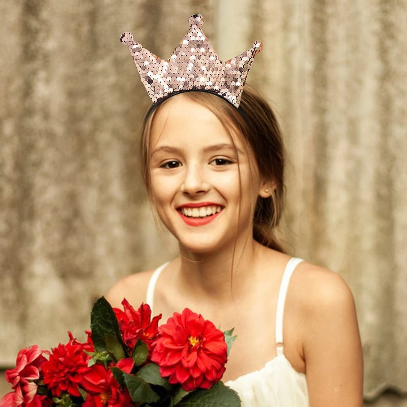 Crown Headband Laser Glitter Hair Band Crown Sequin Hair Accessories Girls Women Birthday Party(Khaki)