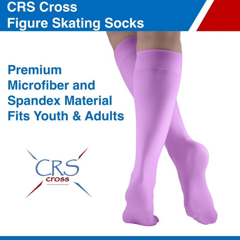 Leave thicker sports socks for the gym. These are THE go-to socks for ice-skating, figure skating and fashion. These knee-high nylons are designed with a four-way stretch to conform to most leg sizes for non-constricting comfort. Features a stay up top designed specifically to hold onto your calfs without the discomfort of a tight band. CRS Cross utilizes premium nylon and the best spandex on the market to make our skate socks. Our smooth and breathable material allows for wearable comfort. Keep your feet comfortable and dry with our ultra thin skate socks. These sleek fitting skate socks allow your feet to breathe. The softness keeps your feet and legs going all day long. Velvety smooth performance for any sporting activity. CRS Cross Figure Skate knee highs also can be worn as Jean Socks or Trouser Socks. A great addition that complements most outfits. Needed ice skating accessories and to complete your figure skating practice clothes. These thinner socks allow your legs to breathe while keeping you classy. Perfect for wearing with a variety of shoes, flats, heels, and other footwear. Wear CRS Cross feminine legwear for work, casual, or for a night out. Slip your feet and legs into this silky soft legwear and feel the premium difference. Don’t criss cross your laces without CRS Cross.