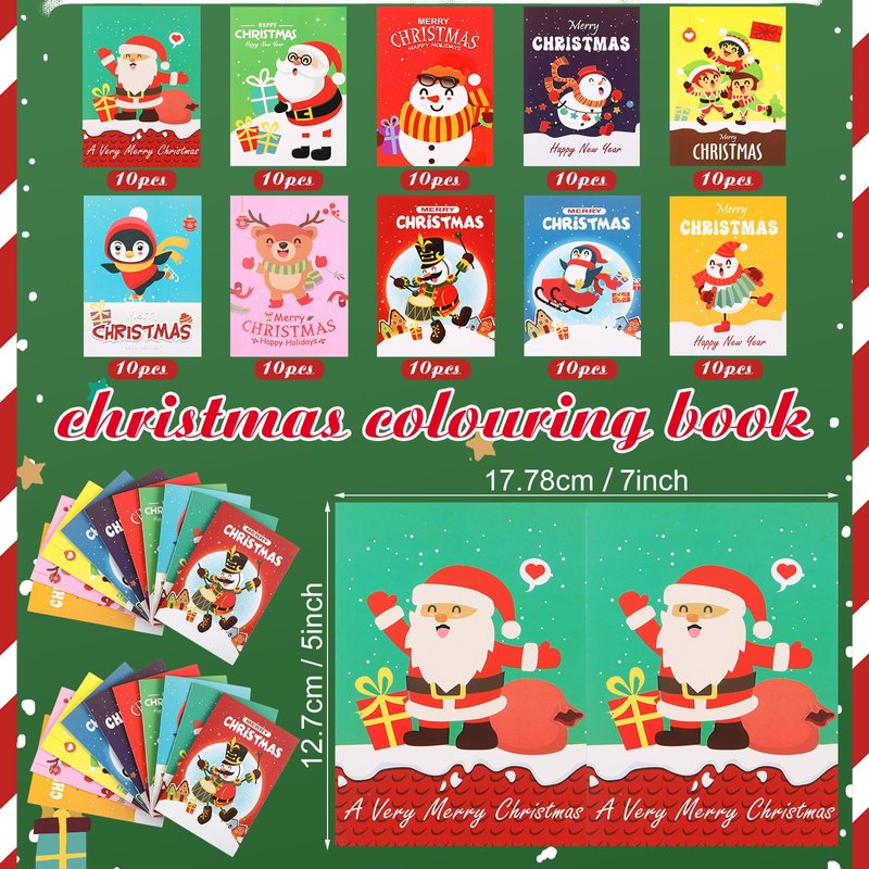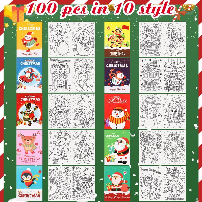 - Abundant and Various Styles: the Christmas coloring books package comes with 100 pieces, offering you a rich and diverse range of options; With 10 different styles, each style offers 10 books; Each book has 2 pages of pictures with many cute Christmas characters for you to draw, allowing you to learn color recognition and stimulate imagination