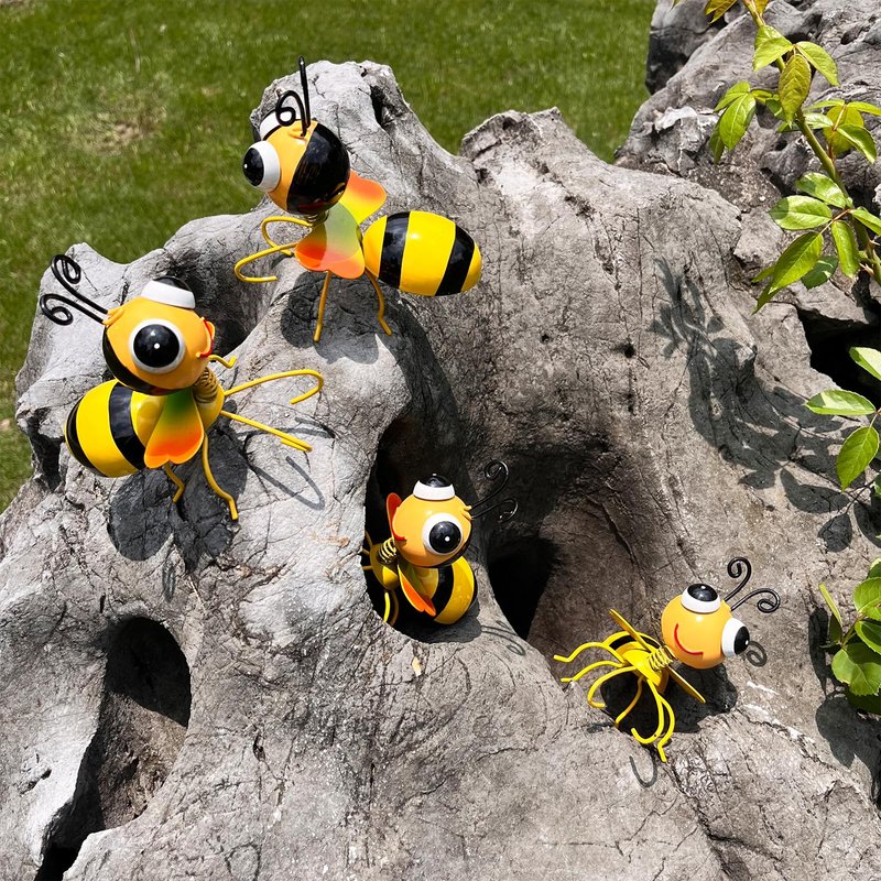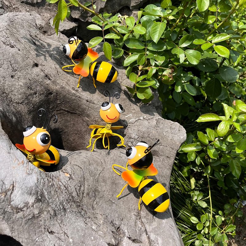 - Metal Bee garden yard décor crafted by punched metal and handy painting, featuring vibrant colors and delicate details, this eye-catching garden statue is sure to stand out among your outdoor decoration to Indoor table display