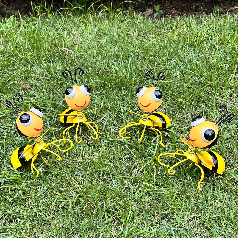 Cruis Cuka Metal Yard Art Cute Bee Garden Decor for Outside Pot Hugger Lawn Ornaments Patio Decor-Set of 4