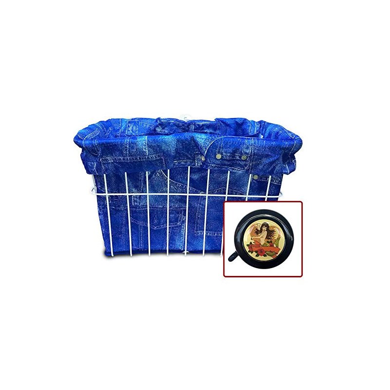 Cruiser Candy Bicycle Basket Liner Basket Cover & Tote in One, Stylish Bike Basket Liner, Yoga Bag,Gym Bag,Beach Bag. Matching Bicycle Bell INCLUDED, Bike Bell (Denim Mermaid)
