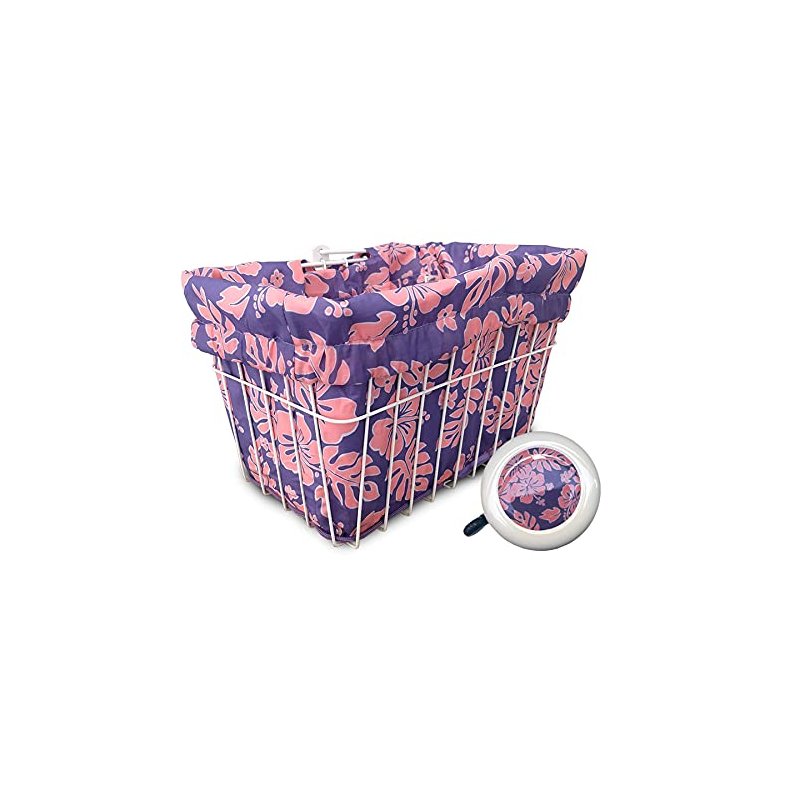 Cruiser Candy Bicycle Basket Liner & Tote in One, Stylish Bike Basket Liner, Yoga Bag,Gym Bag,Beach Bag. Matching Bicycle Bell Included, Bike Bell (Pink Purple Hibiscus)