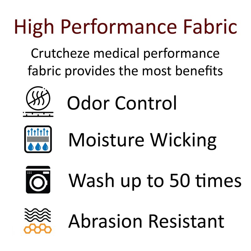 - The Only Crutch Pads made with BODYCARE fabric: Moisture wicking, specially treated to control odor, breathable covers to keep skin dry and comfortable.