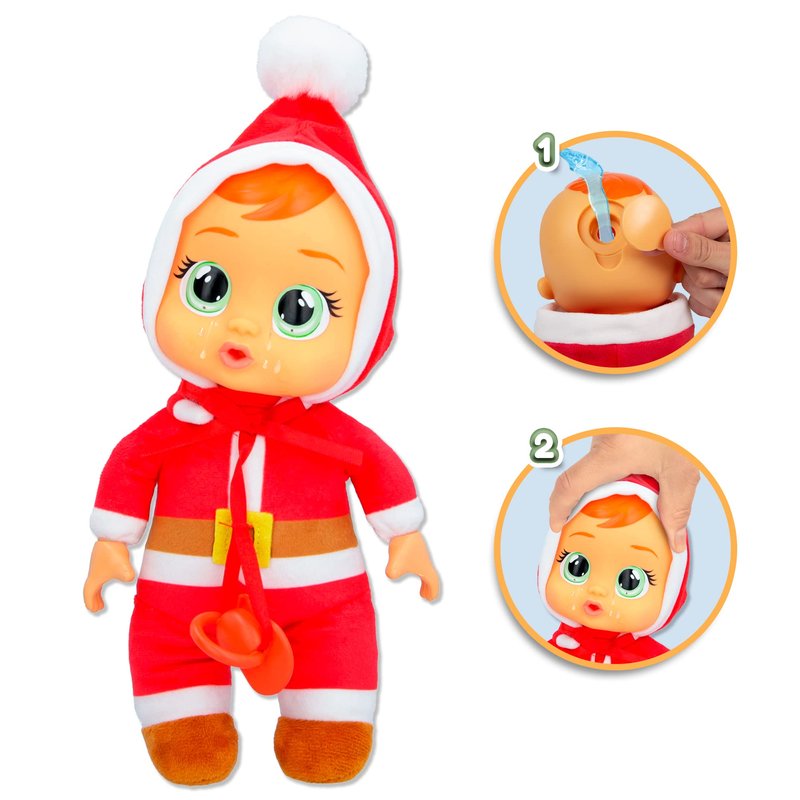 - Cry Babies Tiny Cuddles cries real tears! Add water and press their head to watch them cry!