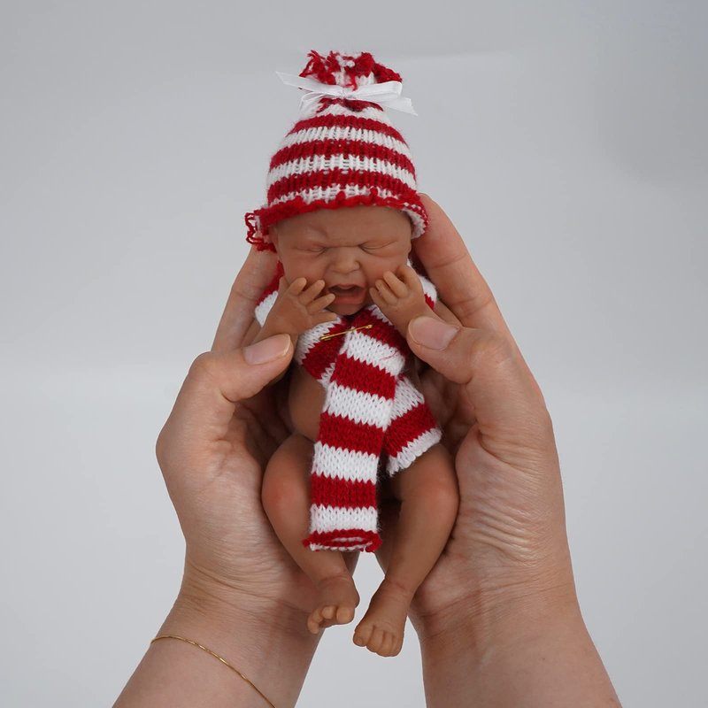 - 【Features】This is a mini reborn baby doll,Size: 7 inch from head to toe, weighs 8.64 OZs, palm-sized, mini and portable; Eyes: can't blink; Washable, easy to care and maintain.