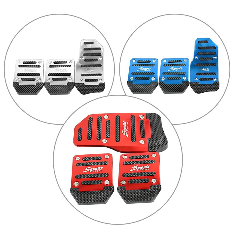 Crynod 3 PCS Car Anti-Skid Pedal Pads, Accelerator Brake Clutch Alloy Strip Rubber Stripe Pedal Kit, Manual Transmission Brake Pad Cover Replacement, Universal Accessories for Most Cars (Red)