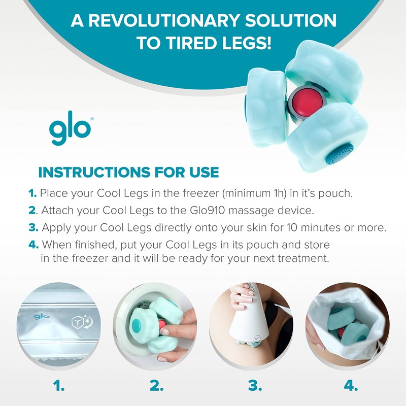 - CONTROLLED COOLING IN MOTION: Uses a cool gel that does not provoke freezing or irritating the skin. The deep-working cool-massage relieves the fluid retention which makes legs puffy, tired and congested and restores a forgotten nimbleness. IMPORTANT: ONLY works with Glo910 and Glo910+ Anti Cellulite Massage Machine.