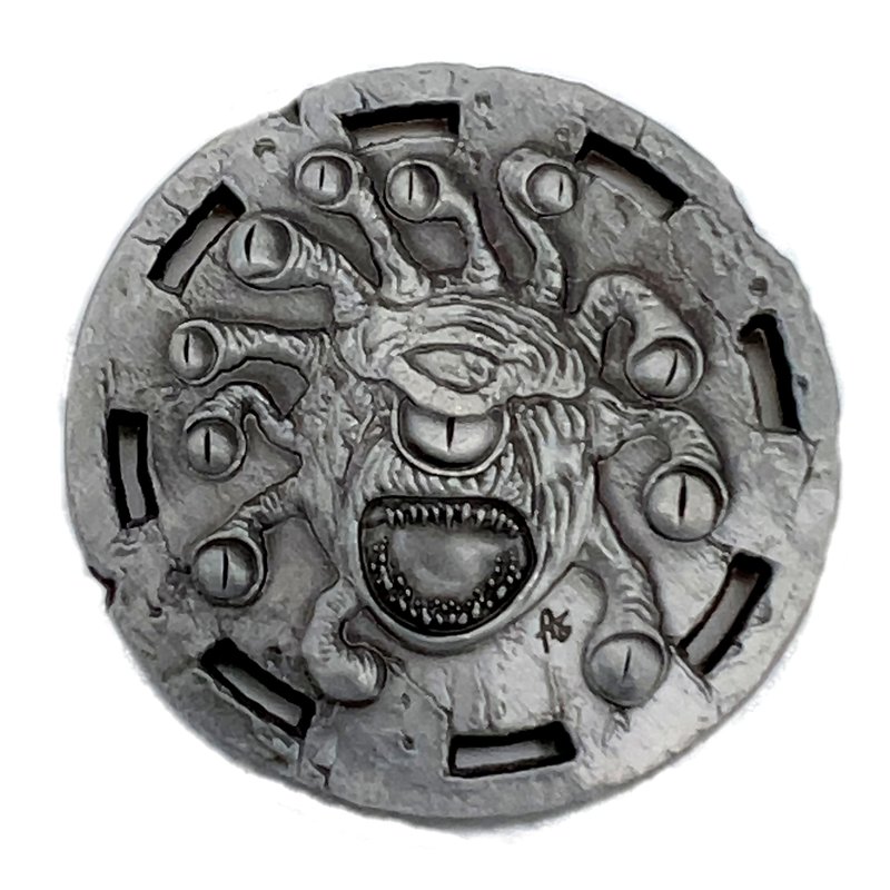 Cryptic Creative Silver Eye Tyrant Decision Coin D2 Heads-Tails - Yes-No RPG LARP