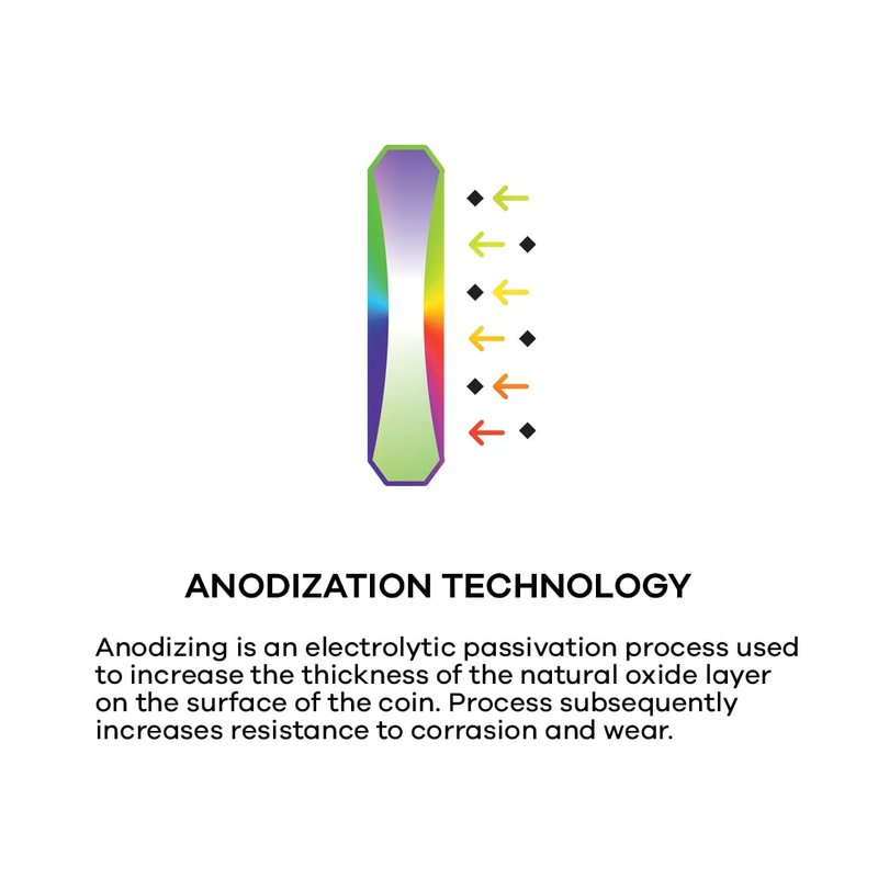 Designed for the most serious crypto holders in mind. Shiba Inu (SHIB) Galaxy coins are the first rainbow coins to hit our galaxy! 🚀 Featuring the most advanced anodization technology 🚀 Precise CNC machining to enhance rainbow affect 🚀 Crafted using pure zirconium alloy. Feels amazing. 🚀 Each coin's rainbow effect is different. No two coins are alike.