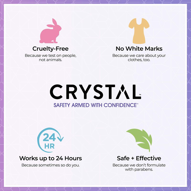 - CRYSTAL CLEAR INGREDIENTS: Crystal is the only deodorant brand to receive Clean Label Project Purity Award for ALL of our deodorants. We never use aluminum chloride, parabens, sulfates, phthalates artificial fragrances, or colors.
