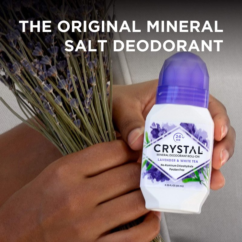 CRYSTAL Aluminum Free Mineral Deodorant Roll-On for Women & Men, Lavender & White Tea - Paraben Free - Certified Cruelty Free & Vegan Deodorant - Prevents Odor Up to 24 Hours,2.25 Fl Oz (Pack of 3)