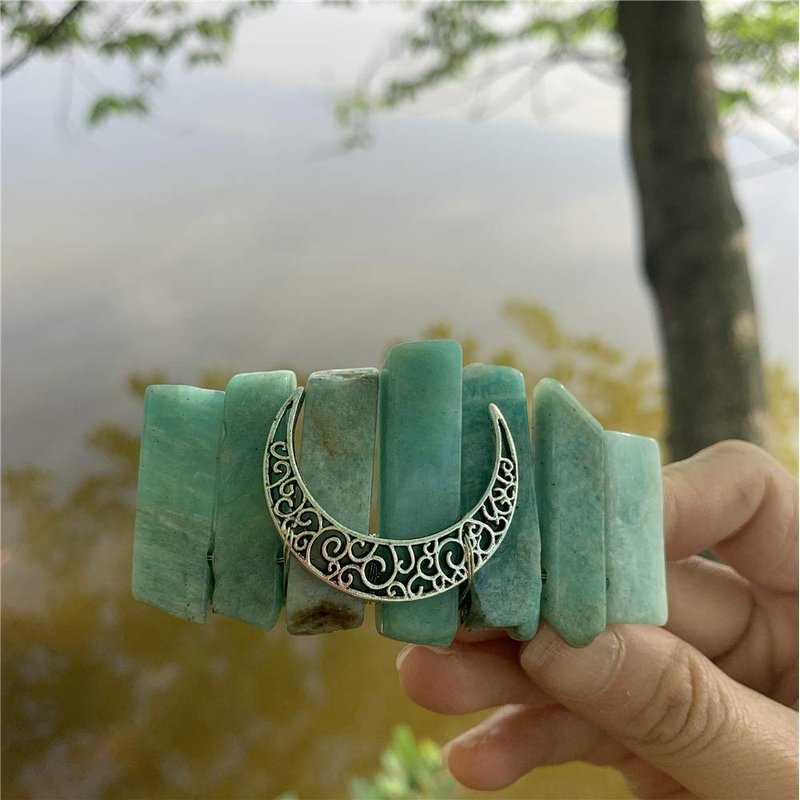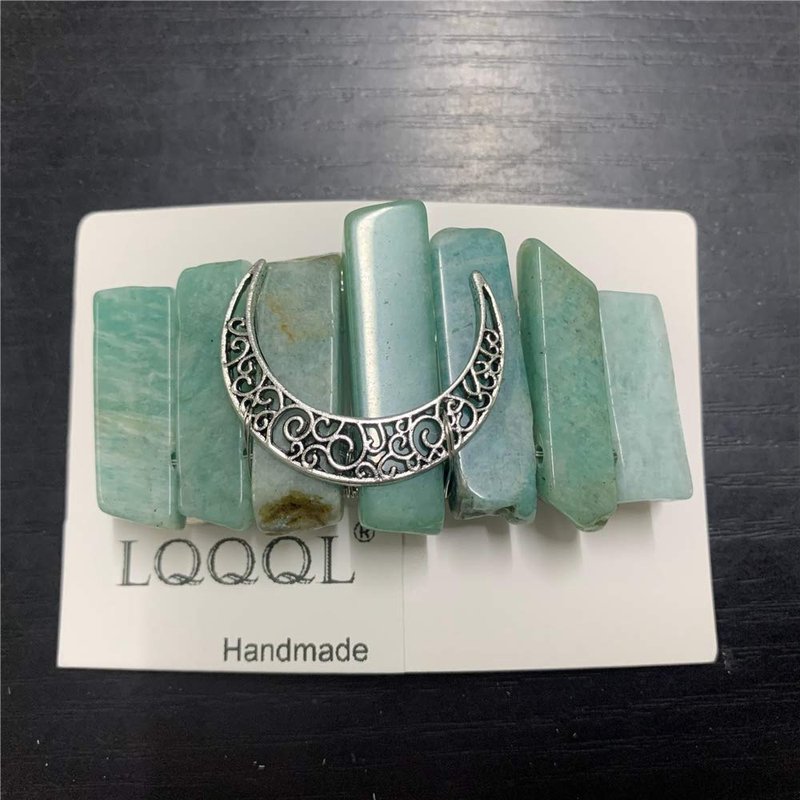 This Crystal Hair clip is made by Genuine Amazonite Crystal Stones.The size is 8cm long,because of the stone are natural, so each on is different.