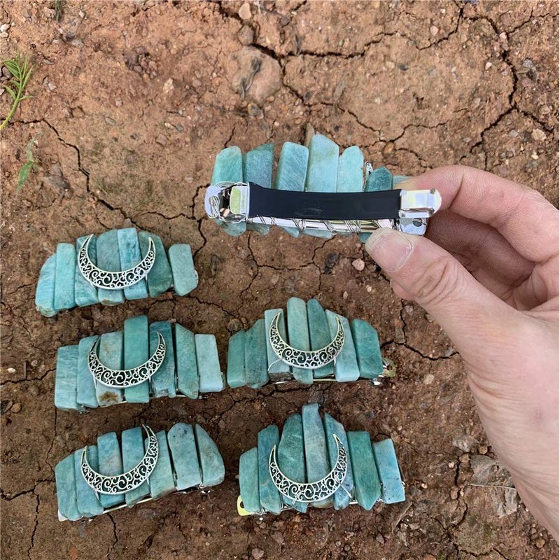 • This hairclip is made of natural amazon stone, natural crystal will have defects, the pursuit of perfection, please order carefully